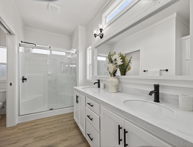Brand new Silvercrest Summit home located in a 55+ senior park in Stanton, CA. This Energy Star Certified home features 9’ flat ceilings with crown molding and an open floorplan. The kitchen includes a large working island with Quartz countertops, soft-close shaker-style drawers and cabinets, and Whirlpool stainless steel appliances. Luxury vinyl plank flooring runs throughout the home, and transom windows provide abundant natural light. The master bedroom offers a walk-in closet and en-suite bathroom with dual sinks, quartz countertops, and a full-size shower. Guest bedrooms include generous closet space. Additional features include ceiling fans, a full-length carport, and a 7-year home warranty. Conveniently located near freeways and shopping, this is a great opportunity to own a modern, energy-efficient home in a peaceful senior community.
